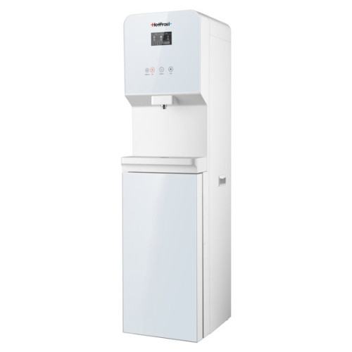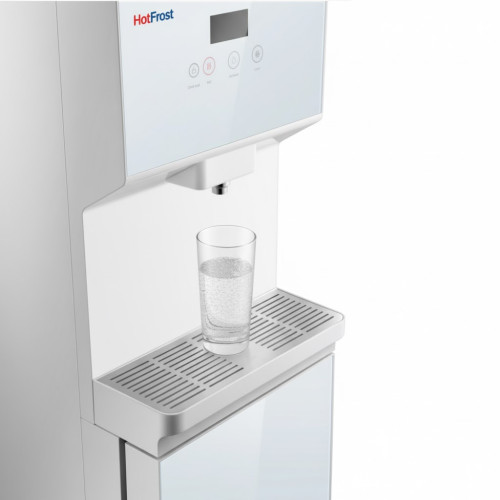 - Дизайн и управление - передняя панель изготовлена из закаленного стекла и имеет дисплей. Чтобы набрать воду, нужно только нажать кнопку горячей или холодной воды. При этом дисплей отображает всю актуальную информацию - активные функции, ресурс картриджей и необходимость замены фильтров.