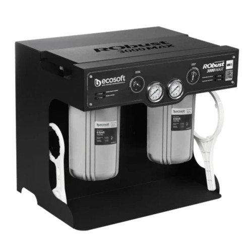 Ecosoft RObust 3000MAX — це компактний і високопродуктивний фільтр зворотного осмосу, створений для стабільного постачання чистої питної води у сфері HoReCa (кафе, ресторани, кав’ярні), а також для офісів, лабораторій та виробництв.