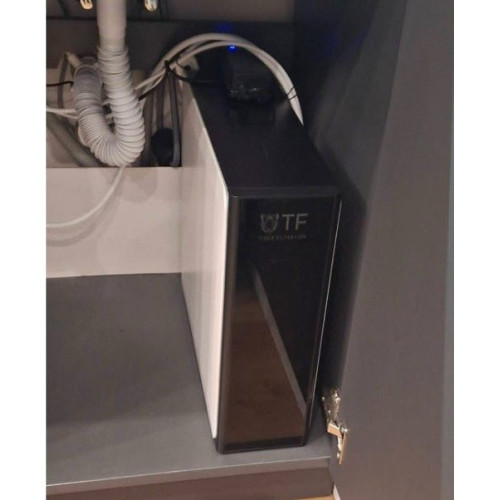 Модель має розумне управління, яке відображає на дисплеї показники TDS (якість води) та автоматично сповіщає про необхідність заміни картриджів. Комплектується подвійним краном, що надає можливість вибору між очищеною та мінералізованою водою. У цьому фільтрі використовуються стандартні картриджі Slim 10, що робить її обслуговування доступним та простим.
