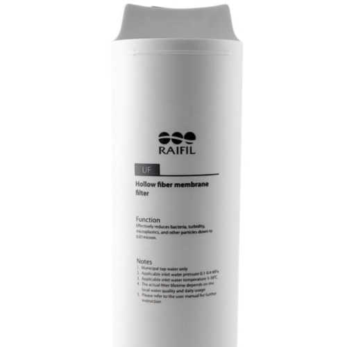 Змінний модуль Raifil №2 (UF) - це основний етап очищення у системі Raifil NOVO 3 Compact. Ультрафільтраційна мембрана робить воду безпечною для пиття, видаляючи мікроби та віруси, але при цьому зберігає мінеральний склад води.